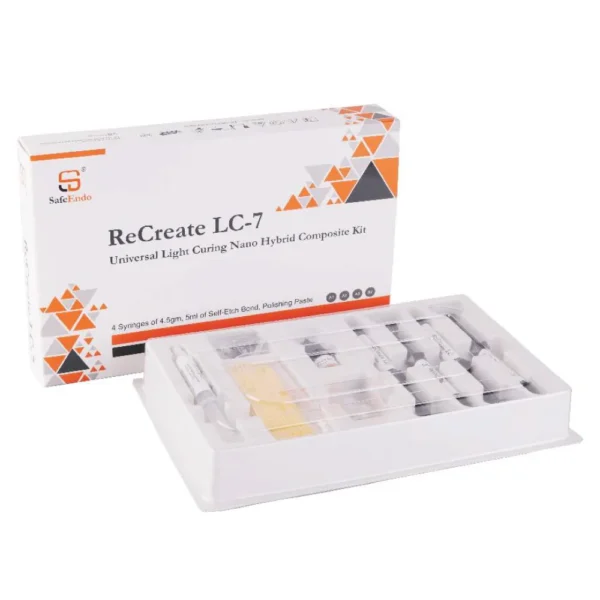 The SafeEndo ReCreate LC-7 Composite Kit stands as a pinnacle in modern restorative dentistry, offering a comprehensive solution for dental professionals. This advanced kit comprises four syringes, each containing 4.5g of nano-hybrid composite in popular shades A1, A2, A3, and B2. The ability to request custom shade options underscores its commitment to personalized patient care.